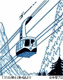 当時、ロープウェイは話題性も十分で、漫画家の手塚治虫氏が1959年(昭和34年)に少年サンデーに連載した「スリル博士」という漫画には背炙山ロープウェイを舞台に主人公の「ケン太」が活躍するエピソードが登場します。