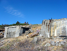 上の写真の手前に少し写っていますが、朝日山に面した谷の急斜面に、ゴンドラ発着所の基礎の一部と思われるコンクリ塊が、わずかに残っていました(写真右)。