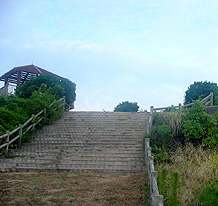 そして、下の写真が山頂駅(高津子山駅)のあった場所です。手摺の向こう側の空き地の、向かって左奥方向に駅舎が建っていたようです。
