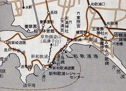 新和歌遊園ロープウェイ(通称:和歌浦ロープウェイ)は山麓の和歌浦駅と和歌浦湾を見下ろす高津子山(たかつしやま:標高151m)の山頂駅を約3分で結んでいた1960年開業の索道。